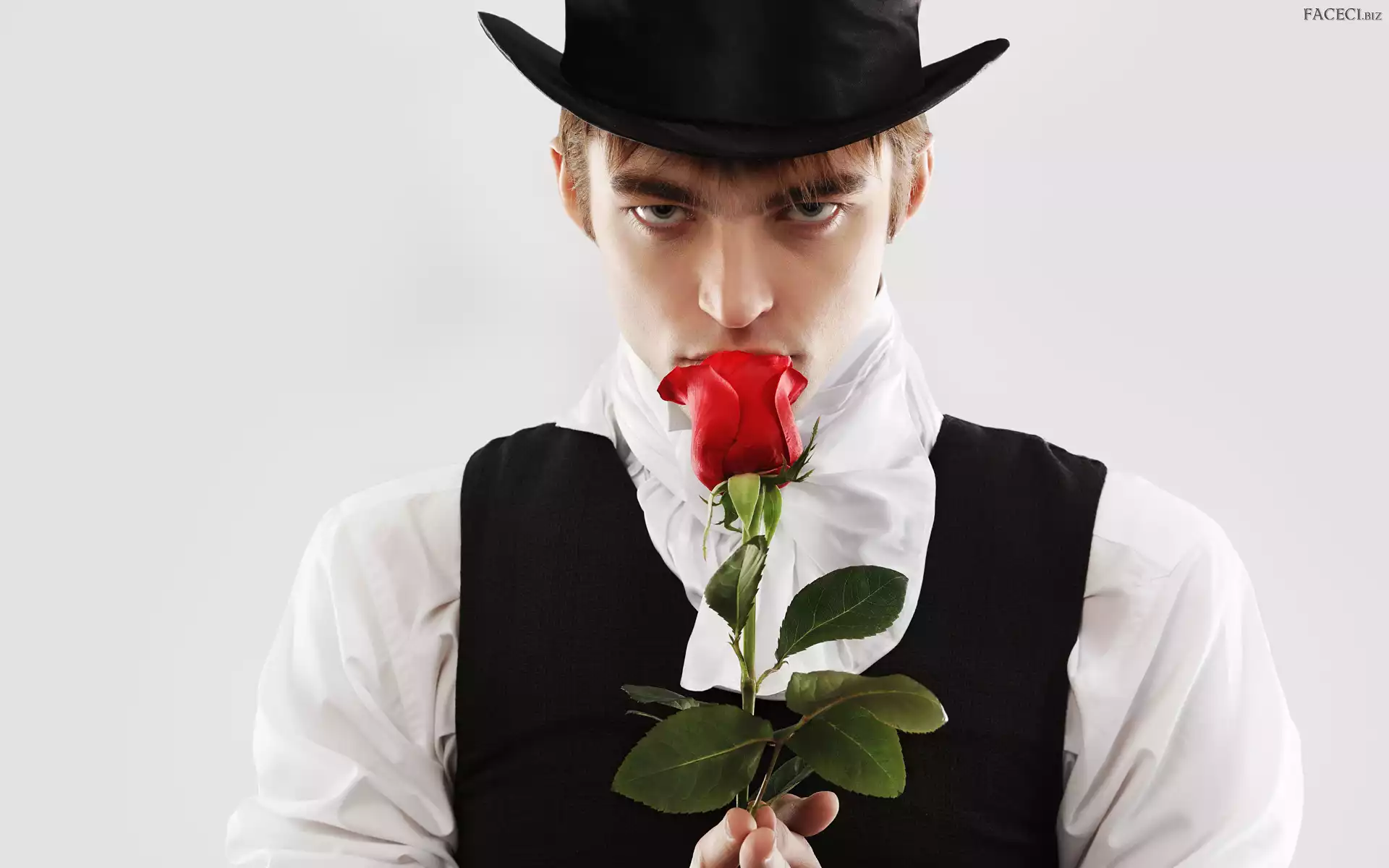 Róża, Biała, Mężczyzna, Kapelusz, Czerwona, Kamizelka, Koszula - faceci.biz